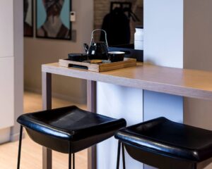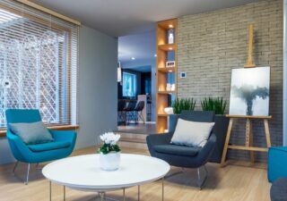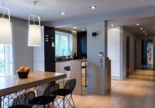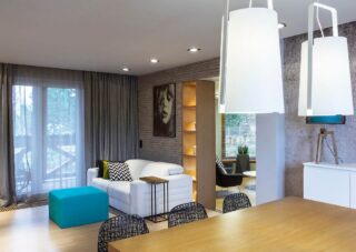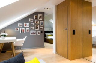 Projekt wnętrz obejmował dwa poziomy istniejącego już domu jednorodzinnego o powierzchni 134m2. Dom miał być odskocznią od codziennego zabiegania. Cała przestrzeń została zaaranżowana przy użyciu bieli i szarości oraz jasnego, ciepłego drewna. Przestrzeń dopełniają mocne akcenty kolorystyczne. Wnętrze jest odważne, kobiece…nie bez powodu! Zbudowane kolorem, grą płaszczyzn, świateł i dodatków tworzy przyjemną przestrzeń do odpoczynku z lampką wina wieczorem lub filiżanką porannej kawy o świcie.